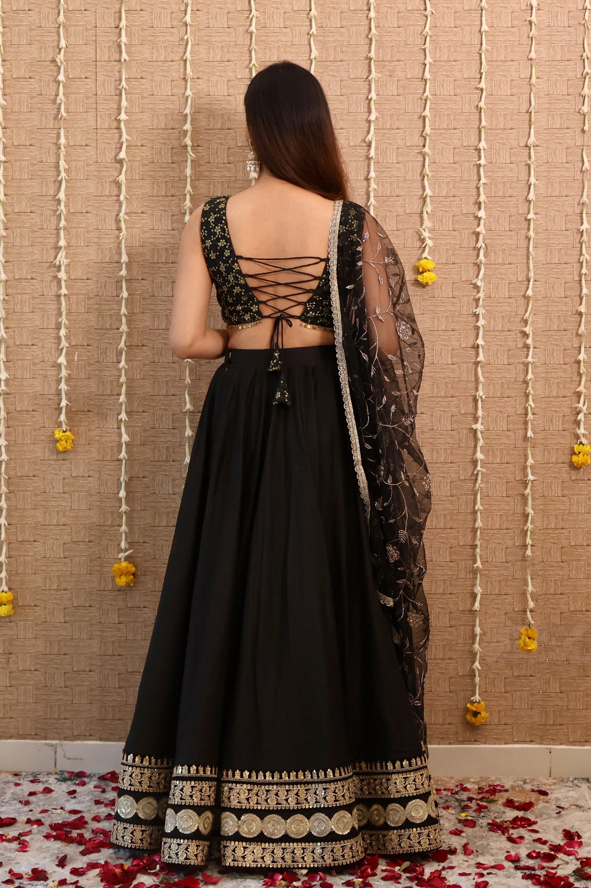 Black Chanderi Silk Lehenga Set