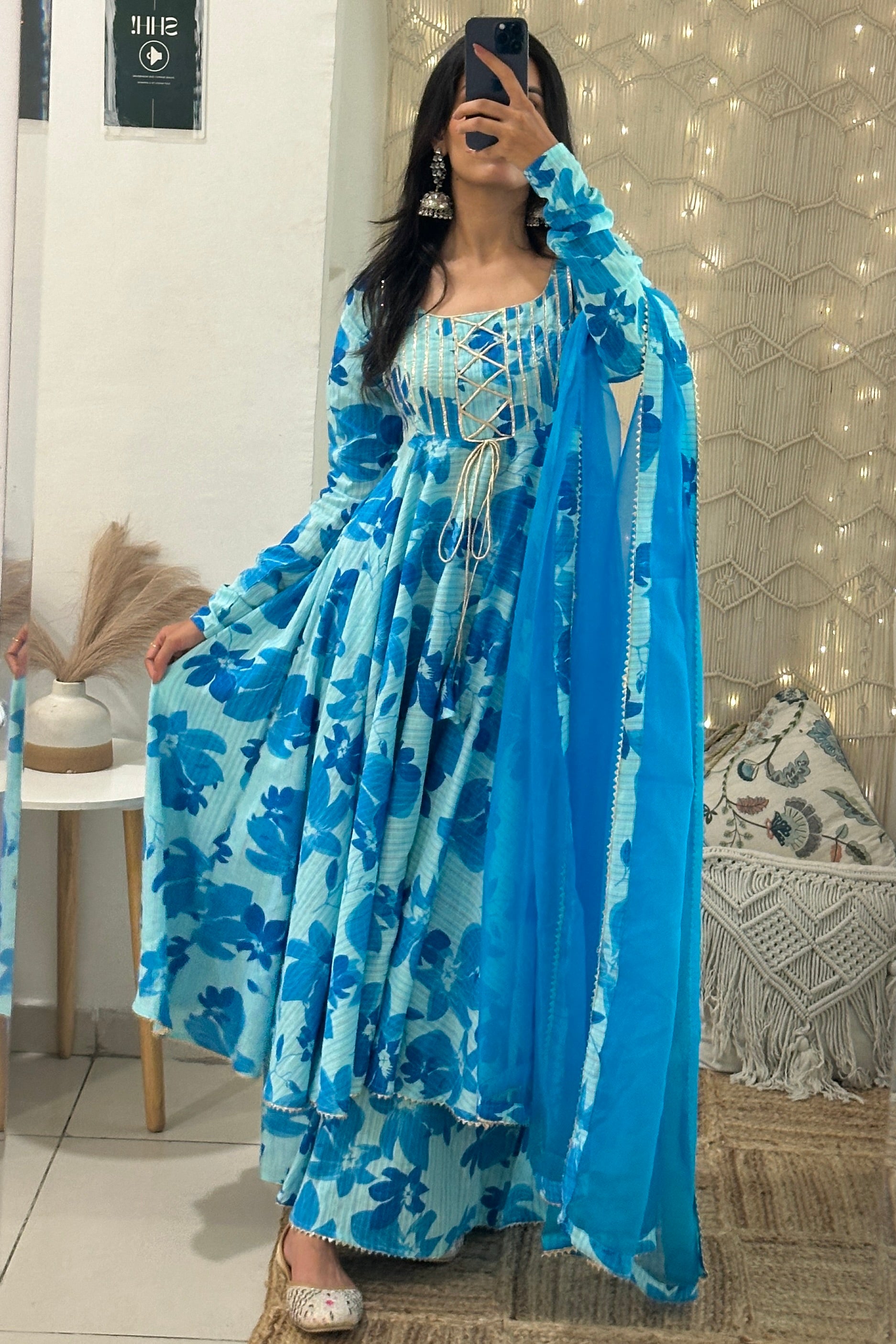 Fabric : Bottom - Cotton, Top - Cotton, Dupatta - Organza